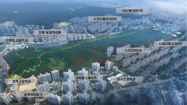 신봉3 근린공원은 수지구 신봉동에서 성복동까지 걸쳐 있으며, 면적은 축구장 72.5개 크기인 51만 8047㎡에 달한다. 용인서울고속도로 서수지TG와 가깝고 성복동과 신봉동에 약 2만 세대의 아파트 단지가 있어 개발 요구가 높은 지역이다.