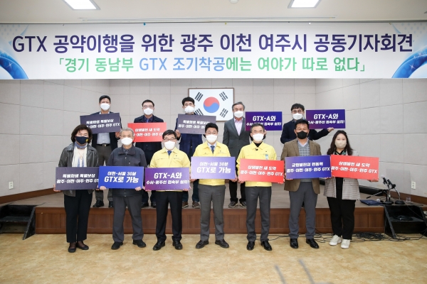 광주 ․ 이천 ․ 여주 국회의원과 6. 1. 지방선거에 나서는 모든 후보들께 간곡히 말씀드립니다.GTX-A 조기착공과 2028년 완공의 사명을 거역해서는 안됩니다.광주 ․ 이천 ․ 여주의 정치세력은 이번 대선을 본받아 당리당략을 넘어 GTX를 완성합시다.모두의 최우선 공약입니다.광주 ․ 이천 ․ 여주의 모든 시민과 정치세력은 GTX의 착공과 2028년 완공을 위해 대동단결하여 총력을 다합시다.