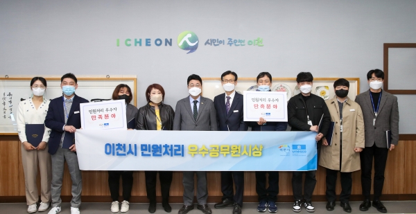 이천시는 7일 민원처리 개선에 기여한 우수공무원에 대한 시상식을 가졌다.2022년도 1분기 민원처리 우수공무원은『만족분야』,『단축분야』2개 분야에 걸쳐 심사하여 총 13명의 공무원이 선정되었다.