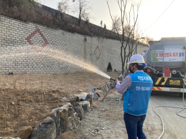 한국도로공사가 발주한 세종~포천 고속도로 광주시 구간인 9공구 시공업체인 DL이앤씨가 지역과 소통하며 지역 문제 해결에 발 벗고 나서 눈길을 끌고 있다.13일 광남2동에 따르면 DL이앤씨는 지난 11일 살수차를 동원, 광남2동에서 식재한 개나리 묘목과 무궁화 묘목에 물 주기 행사를 가졌다.