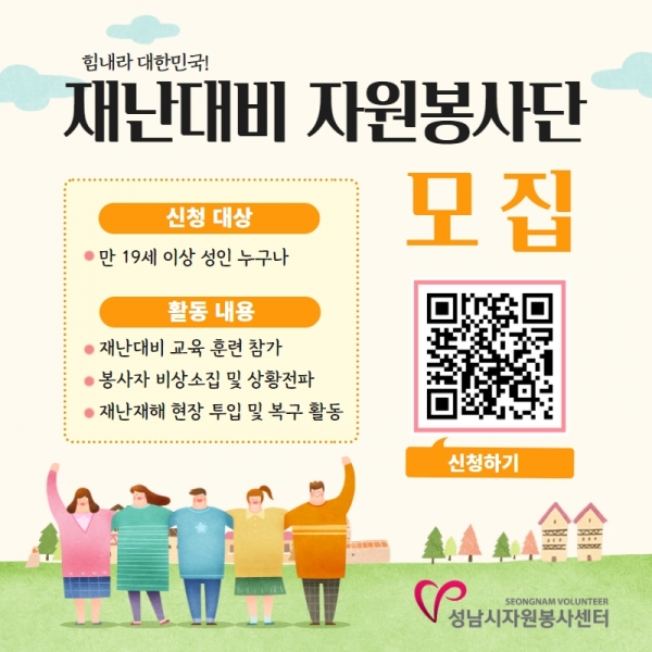 성남시자원봉사센터는 재난대비 자원봉사단 모집