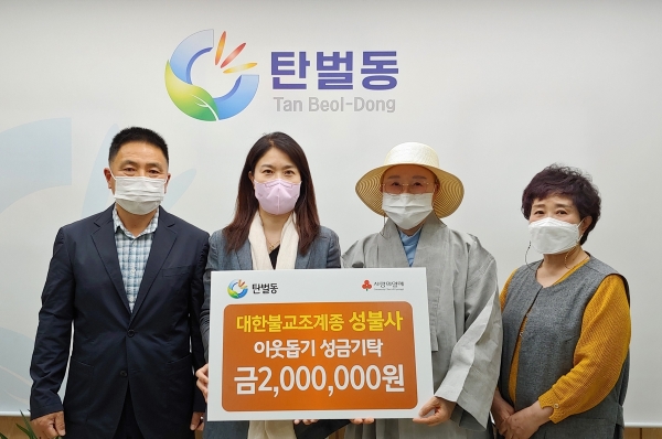 대한불교조계종 성불사는 지난 26일 광주시 탄벌동 행정복지센터를 찾아 이웃돕기 성금 200만원을 기탁했다.