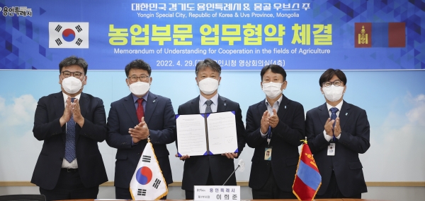 용인시는 29일 시청 영상회의실에서 몽골 우브스주와 외국인 계절근로자 도입을 위해 ‘농업분야 교류 협약’을 체결했다.