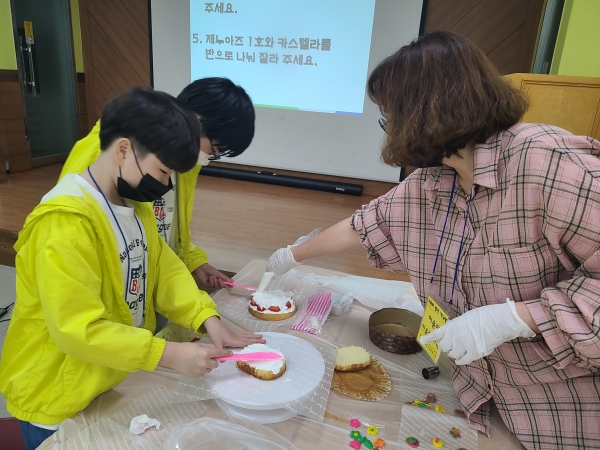 이번 1회기는 4월 식목일을 맞아 가족과 함께 식목일에 대한 의미를 생각해보고 환경에 대한 관심을 갖고자‘케이크 나무 위에 피어나는 꽃’이란 주제로 다양한 식재료를 이용하여 나무를 표현하는 케이크를 만들었다.