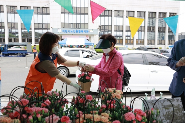 본관 이천시노인종합복지관과 분관 청미노인복지관에서 각각 500여명과 300여명의 어르신들에게 드라이브스루와 워크스루 방식으로 카네이션 화분과 선물을 전달하여 오랜만에 어르신들과 인사할 수 있는 시간을 가졌고, 사회적 거리두기가 완화됨에 따라 네일아트, 가훈써주기, 포토존, 추억의 뽑기 등 어르신들이 참여할 수 있는 프로그램을 진행하여 활기찬 복지관의 모습을 볼 수 있었다.