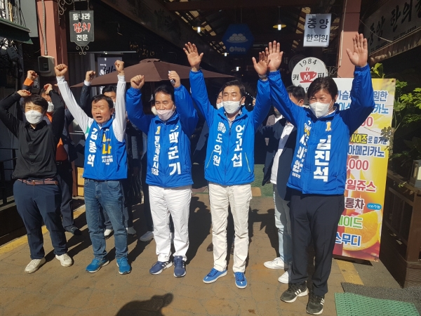 백군기 더불어민주당 용인특례시장 후보가 10일 오후 4시 처인구 김량장동에 위치한 용인중앙시장을 방문했다.