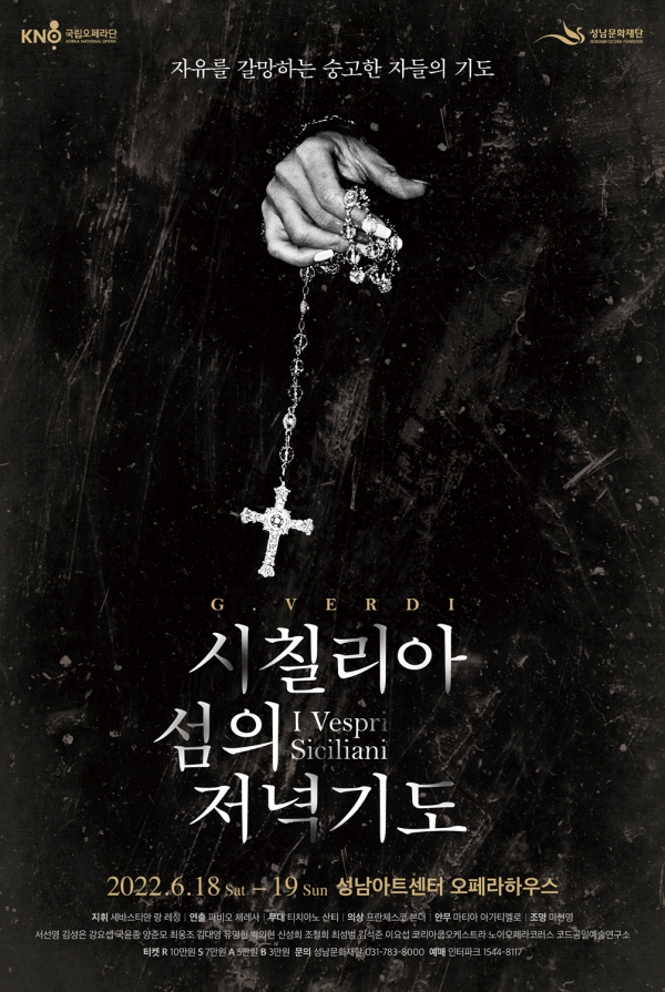 성남문화재단이 평화와 해방을 노래하는 베르디의 대작 오페라, 국립오페라단의 < 시칠리아 섬의 저녁기도>를 오는 6월 18일(토)과 19일(일) 양일간 성남아트센터 오페라하우스에서 개최한다.