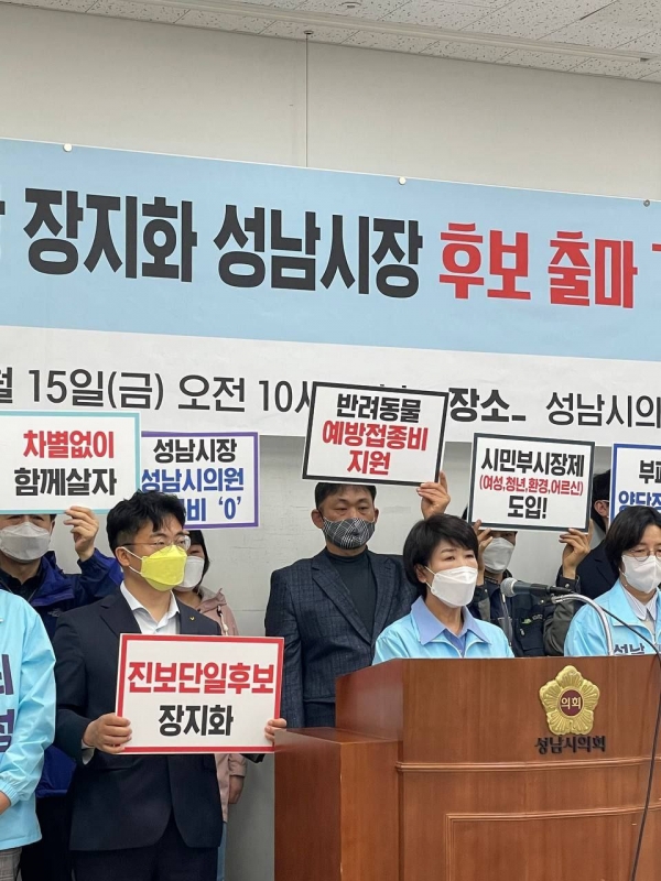 진보단일후보 장지화 성남시장 후보는 “이미 기후위기는 우리 일상에 현실로 다가왔고, 모두에게 평등하게 다가오지 않는다”면서 “지역에서 우리 삶을 지키려면 기후위기를 극복하고 불평등을 해소할 자치단체장이 필요한 시대"라고 밝혔다.