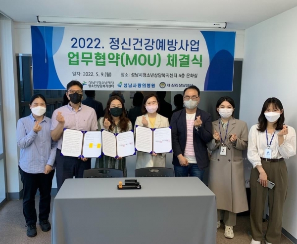성남시청소년상담복지센터는 정신건강 예방사업 종합 심리검사 운영을 위한 참여기관을 공개 모집한 바 있으며, 성남사랑의병원, 차 심리상담센터가 참여 의사를 밝혀 이번 협약식을 진행했다.