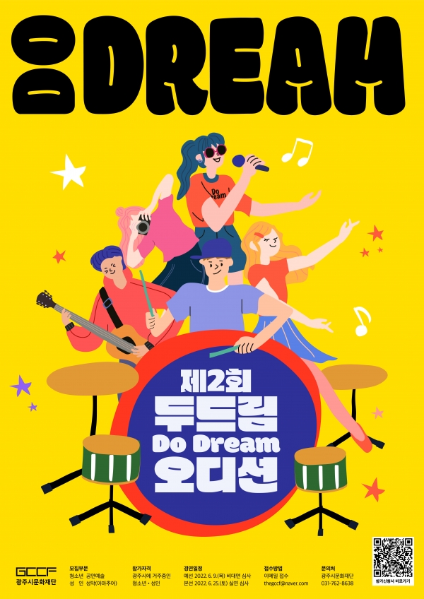 (재)광주시문화재단(대표이사 오세영)은 지역의 문화예술 인재를 발굴하고 광주시민에게 무대 오디션 기회를 제공하는 <제2회 두드림(Do Dream) 오디션>을 개최한다고 밝혔다.
