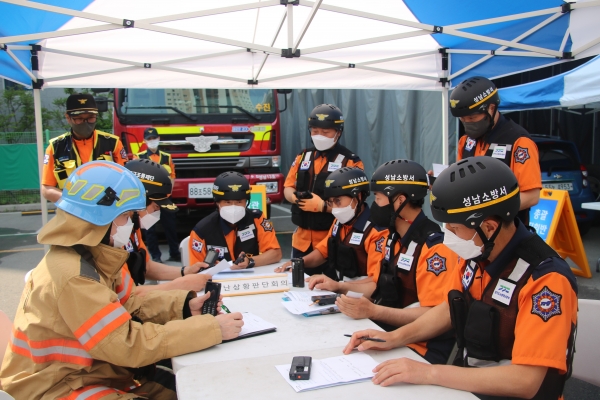 성남소방서(서장 정요안)는 경기도소방본부 주관으로 긴급구조통제단 불시가동훈련 평가를 시행했다고 18일 밝혔다,