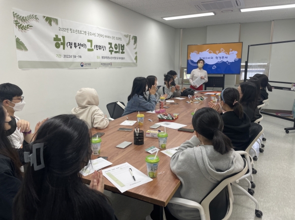 성남시청소년재단(대표이사 진미석) 분당야탑청소년수련관은 지난 3월 여성가족부 주관 2022년 청소년프로그램 공모사업에 선정된 그린워싱 리터러시 증진 프로젝트‘허(점 투성이) 그(린워싱) 주의보’(이하 허그주의보)를 이달 14일부터 진행하고 있다.