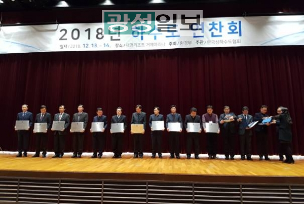 성남시 수질복원센터는 전국 공공하수도의 경쟁력 및 운영관리 효율성 등을 평가한‘2018년도 공공하수도시설 운영·관리 통합 평가’에서 우수기관으로 선정되어 12월 13일 우수상을 수상했다.