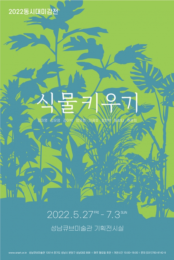 성남문화재단이 2022 동시대미감전 <식물키우기> 전시를 5월 27일(금)부터 7월 3일(일)까지 성남큐브미술관 기획전시실에서 개최한다.성남큐브미술관의 대표 주제기획전인 동시대미감전은 예술을 통해 우리 시대의 다양한 모습을 투영하는 물리적 미감과 심미적 공감대를 추구하는 전시로, 동시대이슈전과 격년으로 개최된다.