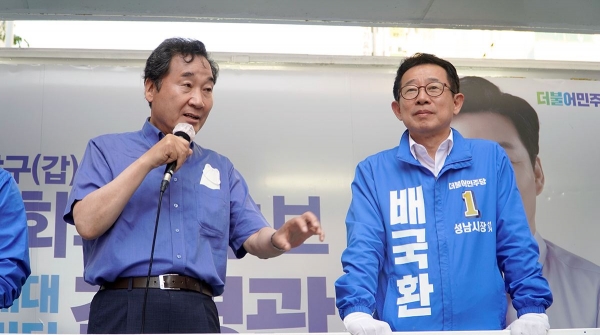 배국환 성남시장 후보가 이낙연 전 대표(제45대 국무총리)와 함께 합동 유세를 펼치며 성남시 민심 공략에 나섰다.