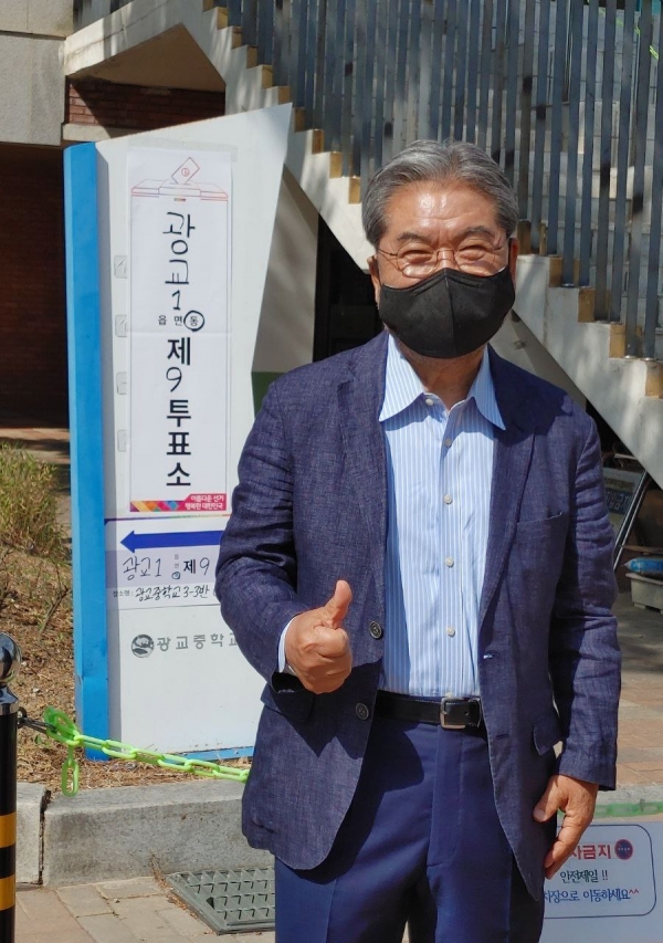 이재정 경기도교육감이 제8회 전국동시지방선거 투표일인 1일 오전 9시, 수원시 영통구 광교1동 제9투표소인 광교중학교에서 투표했다.