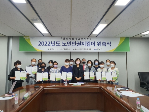 성남시는 노인요양시설 입소자의 인권 보호와 학대 예방을 위해 6월 3일 인권지킴이 16명을 위촉했다.위촉식은 이날 오후 2시 시청 7층 회의실에서 진행됐다.