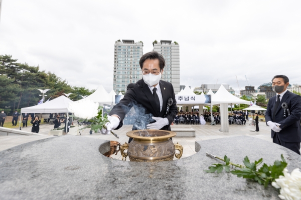 김동연 경기도지사 당선인, 제67회 현충일 추념식 참석 관련 사진 송부드립니다. [경기도] 김동연 경기도지사 당선인, 제67회 현충일 추념식 참석 관련 사진 송부드립니다. 국가를 위해 공헌하고 희생한 순국선열과 호국영령의 명복을 빌고 그 위훈을 기려 도민의 애국정신을 고취하기 위한 행사 참석했다, 저작권자 © 광성일보 무단전재 및 재배포 금지 광성일보 다른기사 보기