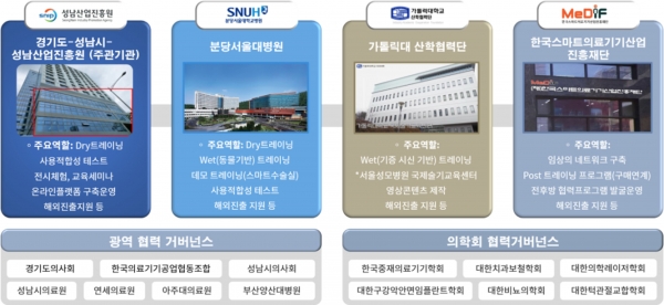특히 경기 성남시 컨소시엄은 국내 최고수준의 시설인프라와 의료 인적자원, 산업육성 노하우를 바탕으로 이론교육-인체모형-동물-해부용시신-환자 기반의 5단계 의료기기 교육훈련 프로그램을 구축하였으며, 경기도의사회, 성남시의사회, 성남시의료원, 한국의료기기공업협동조합, 주요 의학회 등 20여개 핵심기관과 협력체계를 구축해 K의료기기 테스트베드 혁신을 주도할 예정이다.경쟁력있는 국산 의료기기 기업들의 폭넓은 사업참여 구조를 마련한 것도 경기 성남시의 강점으로 꼽힌다.