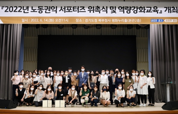 경기도는 14일 경기도청 북부청사에서 도내 영세사업장 종사 단시간·취약 노동자의 노동권익 수호와 노동인권 사각지대 해소에 앞장설 ‘경기도 노동권익 서포터즈’를 대상으로 위촉장 수여식을 열었다.