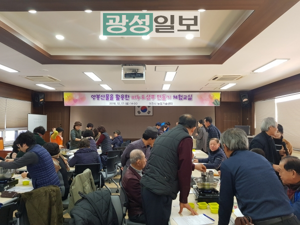 이천시농업기술센터(소장 문호길)는 17일 ‘양봉산물을 활용한 비누&샴푸 만들기 체험교육’을 개최했다. 시민 45명이 참여해 진행된 이번 교육은 이천시농업기술센터에서 이천시 양봉산업의 우수성과 양봉산물(벌꿀, 로얄젤리, 프로폴리스, 화분 등)의 효능과 활용법을 알리고자 이천에서 생산된 프로폴리스를 첨가한 비누와 샴푸를 직접 만드는 체험교육으로 진행됐다.
