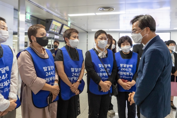김동연 경기도지사 당선인이 발달장애인 가족의 극단적 선택 등 비극적인 일이 되풀이되지 않도록 발달장애인과 그 가족에 대한 대책을 마련하겠다고 약속했다.김동연 당선인은 15일 오후 수원역 지하 1층에 마련된 발달․중증장애인 참사 경기도 분향소를 찾아 헌화와 묵념을 한 뒤 발달장애인 가족들과 만났다.