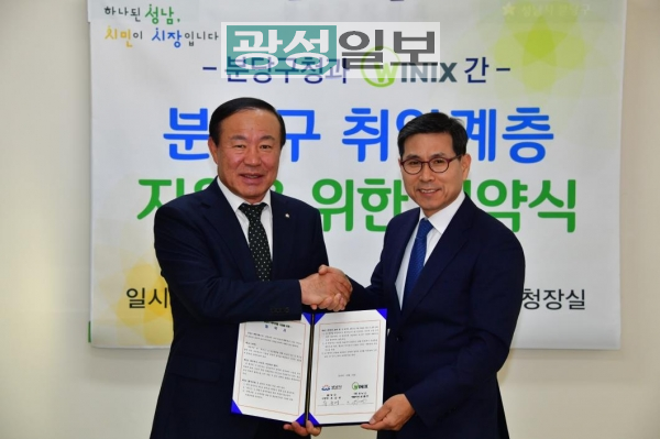 성남시 분당구(구청장 유규영)와 ㈜위닉스(대표 윤철민)가 12월 19일 오전 10시 구청장실에서 취약계층 지원을 위한 협약식을 했다.