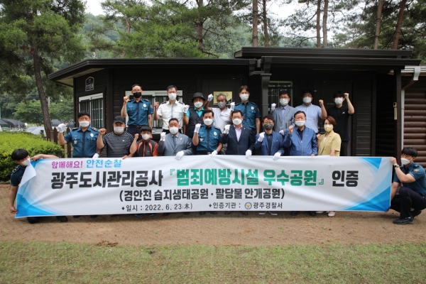 광주도시관리공사는 관내 주요공원 3개소 ‘범죄예방 우수공원’인증패를 수여받았다.