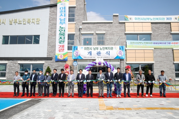이천시는 시장, 국회의원, 도·시의원, 노인회장, 유관기관 단체장, 지역주민 등이 참석한 가운데 6월 24일 노인자원봉사단인 이천지화자의 풍물패 공연을 시작으로 이천시 남부노인복지관의 개관식을 개최했다.