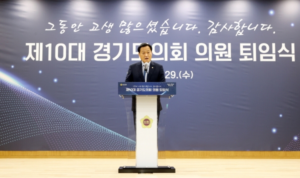 이어 그는 “많은 우여곡절을 이겨내고 한마음으로 협조해 준 동료의원, 집행부, 의회사무처 직원들의 응원과 지지에 진심 어린 감사를 전한다”라며 “경기도의회 의장으로서 저의 소명을 마무리하며 제10대 의회가 놓아둔 디딤돌을 통해 경기도에 더 밝은 미래가 찾아오기를 바란다”라고 말했다.