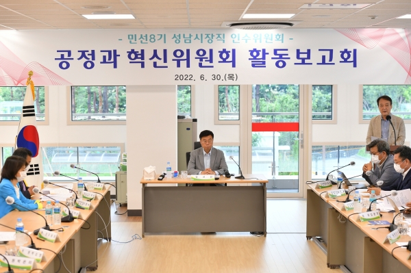 성남시 시장직 인수위원회(위원장 임종순)는 30일 오전 인수위원회 대회의실에서 ‘민선 8기 성남 비전’ 발표 기자회견을 가졌다.