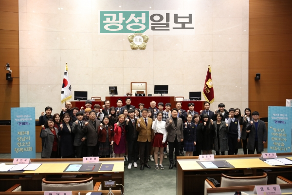 성남시청소년행복의회는 성남시조례-제3070호에 의거하여 청소년의 의견을 대변하고, 각종 정책 발굴 및 제안을 통해 청소년 관련 정책, 지역현안 논의에 주체적으로 참여하고 있으며, 제4대 성남시청소년행복의회 청소년 의원을 모집하고 있다.