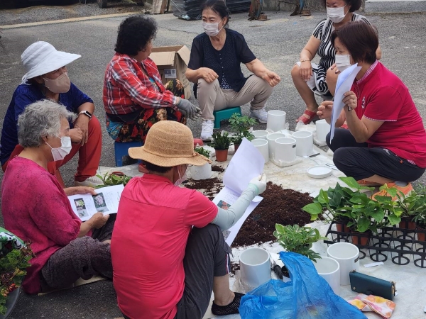 원예 테라피 행사에 참여한 어르신은 “오랜만에 주민들이 옹기종기 모일 수 있는 자리가 마련되어 너무 즐겁고, 심은 식물에서 예쁜 꽃을 피울 수 있도록 잘 가꿔보겠다.”며 감사의 마음을 전했다.