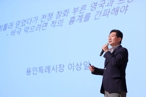 이상일 용인시장이 정전협정 69주년 및 유엔군 참전의 날을 맞아 27일 용인시청 3층 에이스홀에서 열린 ‘특례시민 안보공감 강연회’에서 이같이 강조했다.이 시장은 이날 ‘히틀러 믿었다가 전쟁 참화 부른 영국과 프랑스-비극 막으려면 적의 흉계를 간파해야’라는 주제로 강연했다.