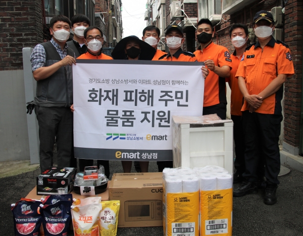 성남소방서는 이마트 성남점과 함께 지난 5월 16일 화재로 인해 주택이 전소되어 큰 피해를 입은 태평동의 주민에게 생필품을 전달했다고 3일 밝혔다.