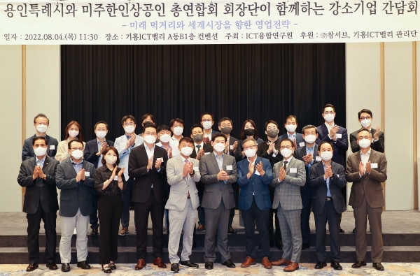 기흥ICT밸리 도시첨단산업단지 내 컨벤션센터에서 열린 이날 간담회에는 이 시장을 비롯해 황병구 미주한인상공회의소총연합회장과 연합회 관계자, 기흥ICT밸리·흥덕IT밸리에 입주해 있는 기업 대표 등이 참석했다.이 시장은 “먼저 해외에서 어렵게 기업활동을 하고 계신 교포분들에게 감사와 격려의 인사를 드린다”며 “오늘 이 자리가 서로 교류하고 소통할 수 있는 장이 되길 기대한다”고 말했다.