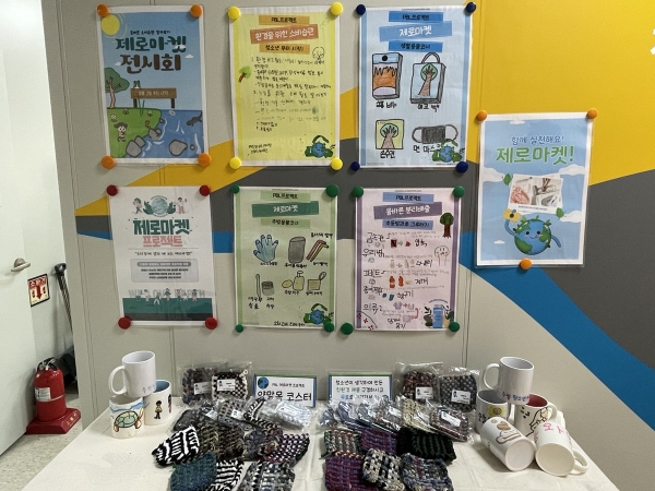 초등청소년방과후아카데미 청소년들은 과폐기로 인해 생겨나는 환경문제를 중심으로 자원순환 방향과 목표를 설정한 뒤, 활용도가 없어진 양말목을 이용한 새로운 가치인 티코스터를 제작해 수련관 방문자들에게 무료로 제공하면서, 올바른 분리수거 및 자원 순환에 대해 함께 설명을 진행하는 식으로 이번 제로마켓을 진행했다.