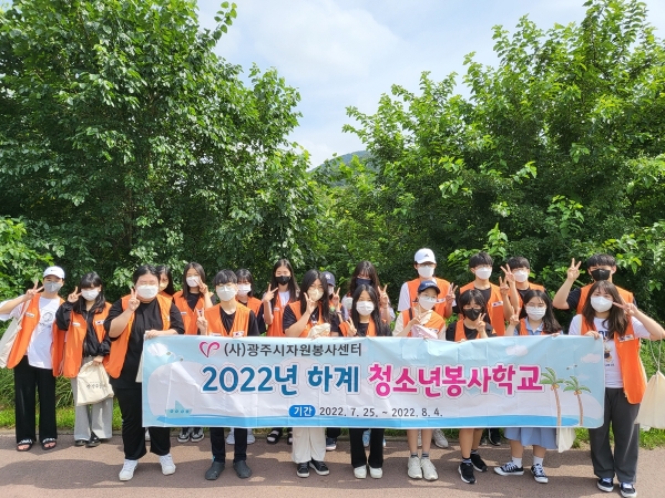 (사)광주시자원봉사센터(이사장 방세환)는 2022년 하계 청소년 봉사학교 프로그램을 일주일가량 세 가지 프로그램으로 진행하였으며 약 80여명의 관내 청소년들이 참여하였다.