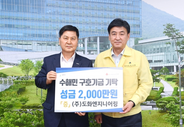 ㈜도화엔지니어링(회장 박승우)은 지난 11일 광주시를 방문하여 호우 피해를 입은 이재민을 위해 사용해달라며 성금 2,000만원을 기탁했다.