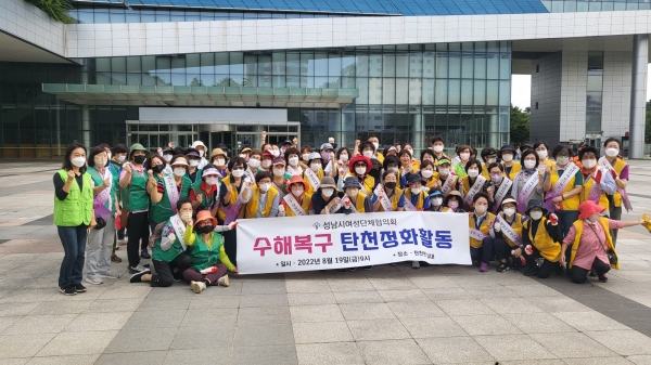 성남시여성단체협의회는 지난 8월 19일 오전에 최근 기록적 집중호우로 범람한 탄천변 정화활동을 실시했다.