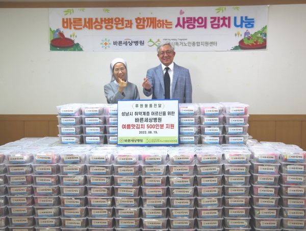 바른세상병원에서 후원한 여름맛김치는 성남시 취약계층 500명의 어르신에게 전달되었으며, 2019년부터 매해 마다 여름맛김치 500인분을 후원함으로써 성남시 취약한 독거노인의 경제적인 도움을 제공했다.