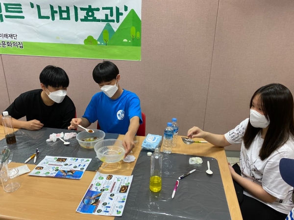 재단법인 용인시청소년미래재단(이사장 : 이상일) 수지청소년문화의집은 지난 20일 생태공존 ‘나비효과’ 3차 활동을 진행했다. 이번 활동은 청소년수련활동인증제에 등록된 인증프로그램으로 청소년들에게 친환경 물병 오호 만들기 활동을 통해 환경에 관심을 가지고, 저탄소 생활 실천문을 작성하여 환경문제에 적극적 참여를 유도하는 프로그램이다.