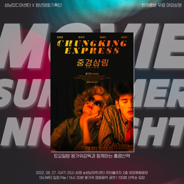 현장에서 입장하는 관람객들에게는 홍콩행 탑승권 모양의 티켓을 나눠주고, 영화 상영 전인 오후 7시 30분부터 20분간에는 왕가위 감독의 영화음악 연주로 설렘을 더한다. 영화 역시 홍콩을 배경으로 하는 <중경상림>을 상영하고, 포토존도 설치해 여름밤 홍콩의 거리를 산책하는 느낌을 만끽할 수 있다.