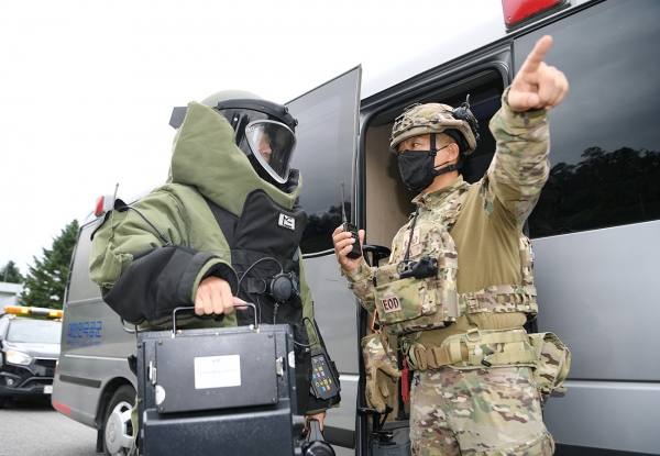 경기동남권지사 성남정수장에서 시행된 이번 훈련에는 15비 폭발물 처리반·화생방처리반과 육군제55보병사단, 성남정수장 경영 관리부, 성남 수정경찰서 등 총 4개 기관이 참여하였다.