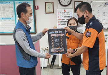 공동주택 관계인에게 자체 제작한 홍보포스터를 전달하고 있다