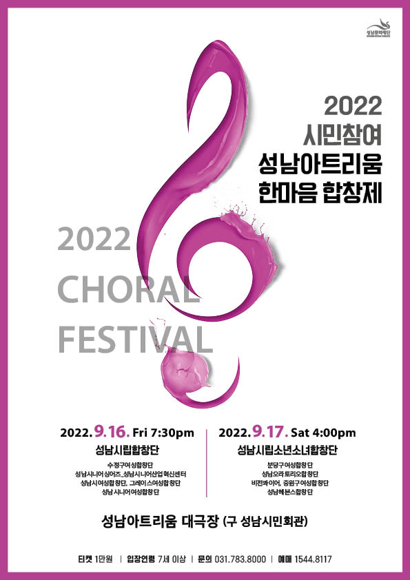 성남문화재단이 음악을 통한 성남시민의 화합과 소통을 위해 ‘2022 시민참여 성남아트리움 한마음 합창제’를 개최한다.