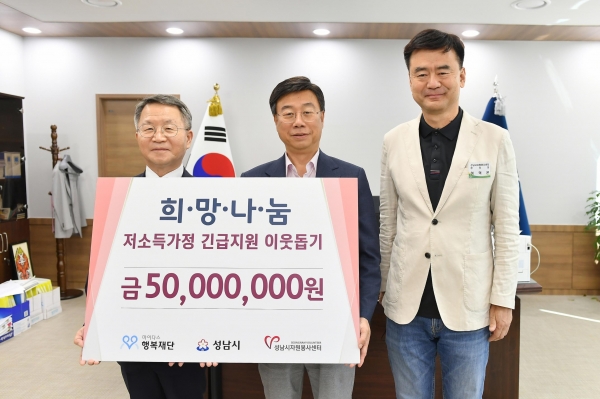 재단법인 마이다스행복재단은 성남시 저소득가정에 5천만원 기부