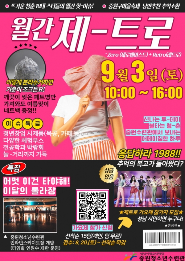 성남시청소년재단(대표이사 진미석) 중원청소년수련관에서는 2022. 성남시청소년어울림마당 4회차‘ZE-TRO(제-트로)’를 중원청소년수련관 앞마당에서 오는 3일 오전 10시부터 오후 4시까지 개최한다.
