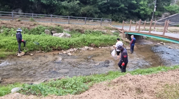 구는 이날 현장에 나가 한 전원주택단지 조성공사 현장에서 굴착 행위 중 발생 용수를 우수관을 통해 방류하고 있는 것을 확인한 후 즉각적인 공사 중지와 함께 성복천에 가라앉아 있는 돌가루, 물고기 사체 등을 청소할 것을 지시했다.구의 조치에 따라 해당 시공사는 침사지 용량을 기존 200톤에서 500톤으로 증설하고, 성복천으로 바로 흘러 들어가지 않도록 오탁방지막 3곳을 설치했다. 또 폐사 물고기와 가라앉아 있는 돌가루 등도 청소했다.
