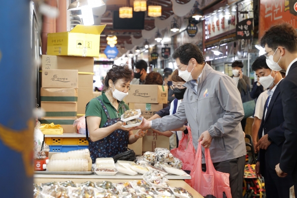 이상일 용인특례시장은 7일 추석 명절을 앞두고 처인구 김량장동 용인중앙시장을 찾아 직접 장을 보며 전통시장 소상공인들을 격려했다.